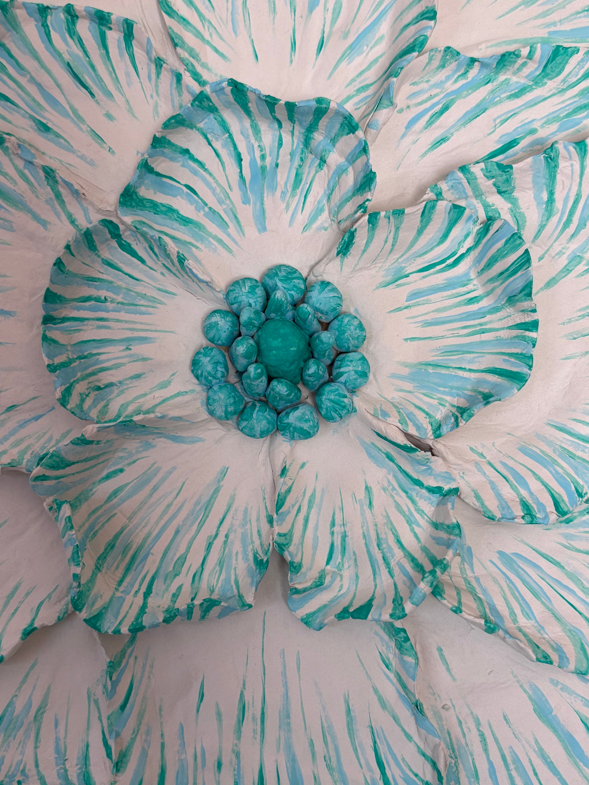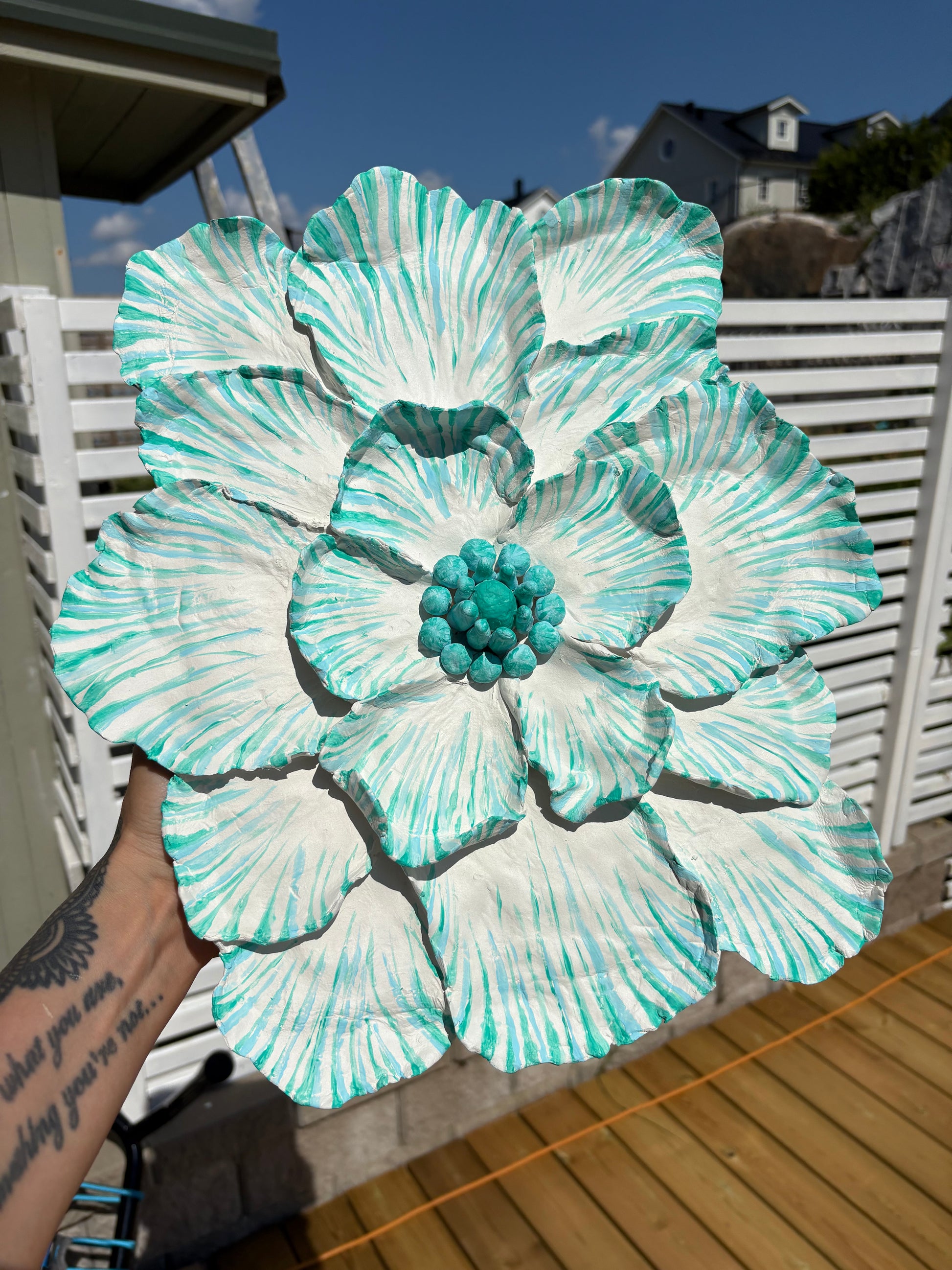 Ett handgjort delikat konstverk med toner av medelhavets turkosa vatten.