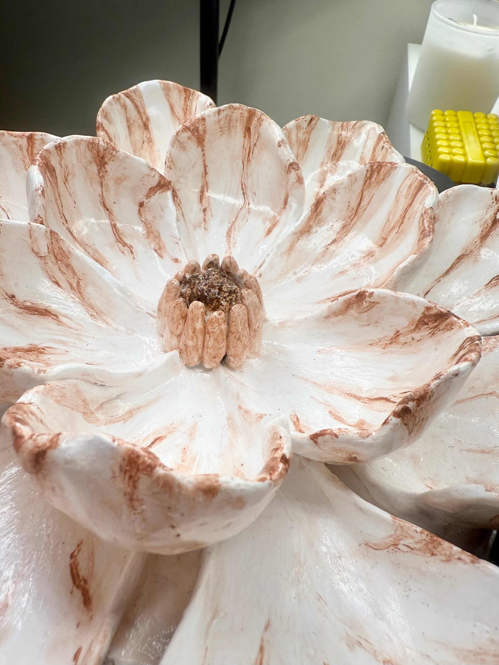 En delikat handgjord lertavla som fångar naturens skönhet och eleganta enkelhet med sina sobra jordnära färgnyanser.