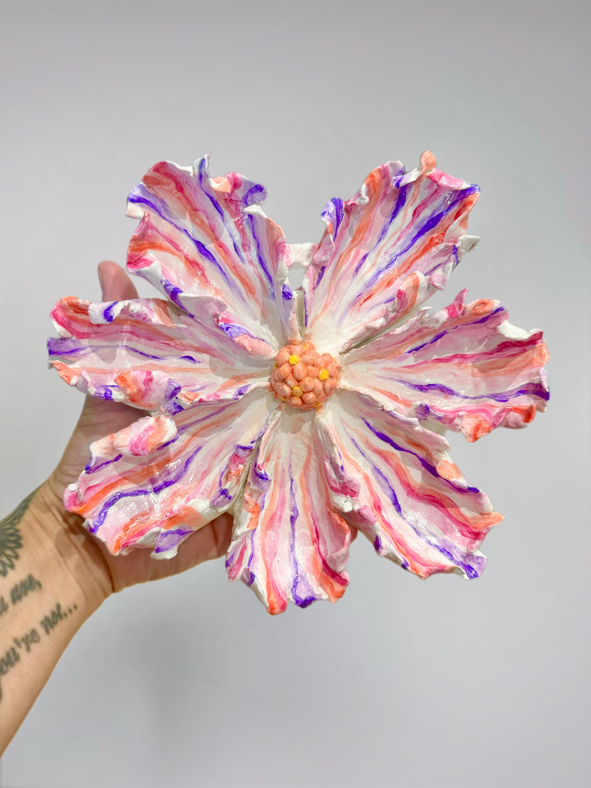 En blommig explosion av färger i denna lilla blommande skapelse kallad “Radiance” gjord i lera.