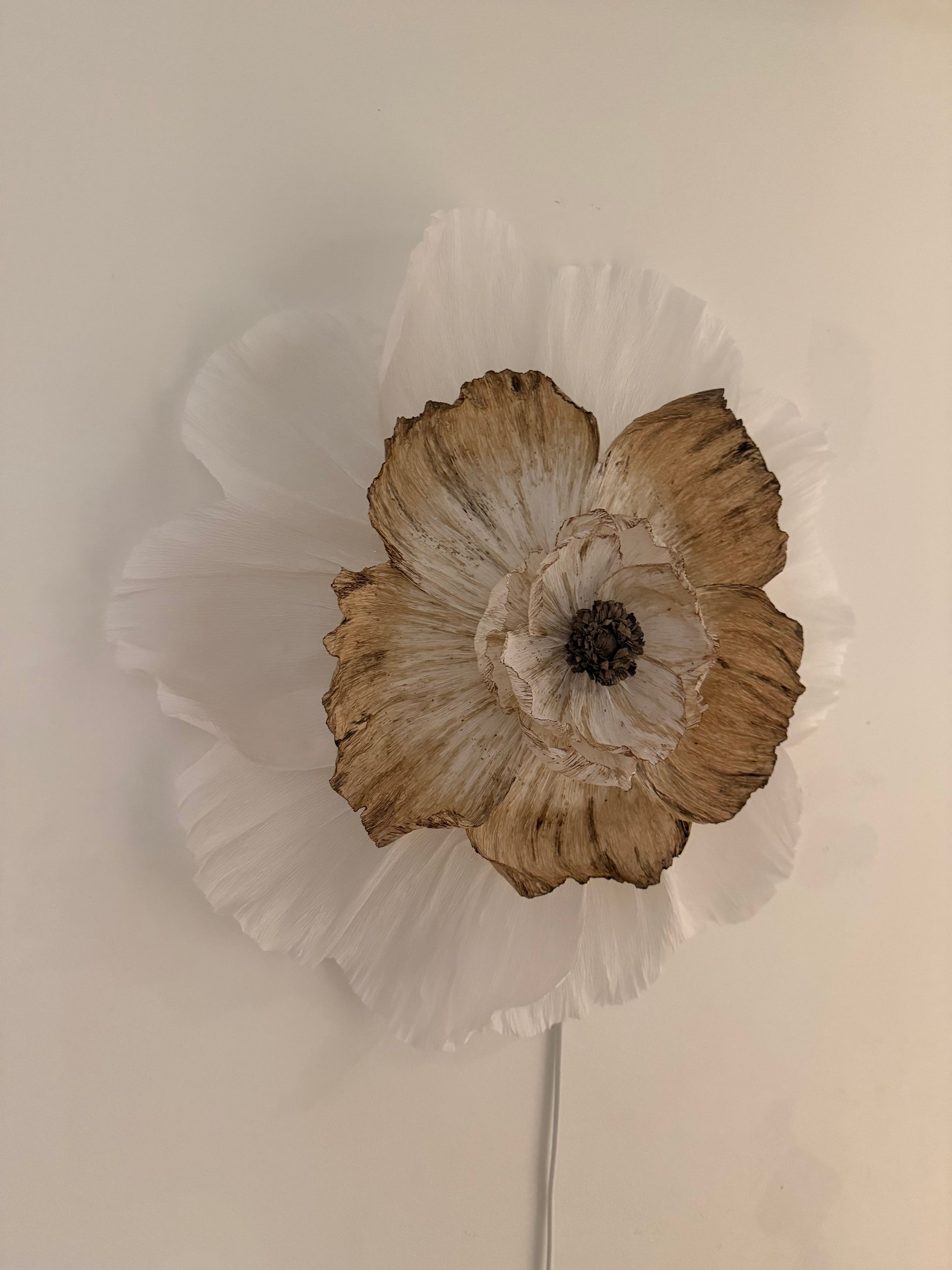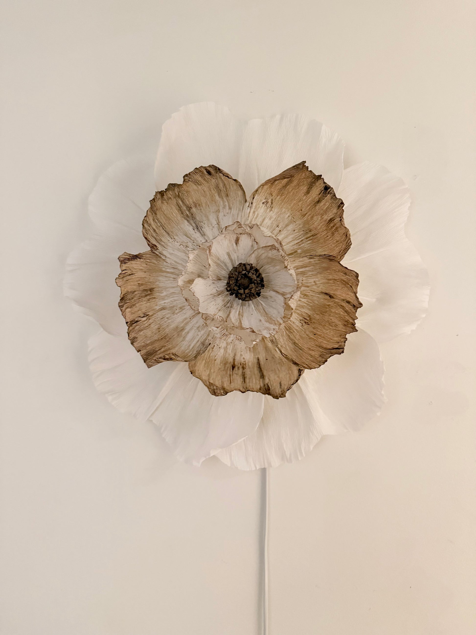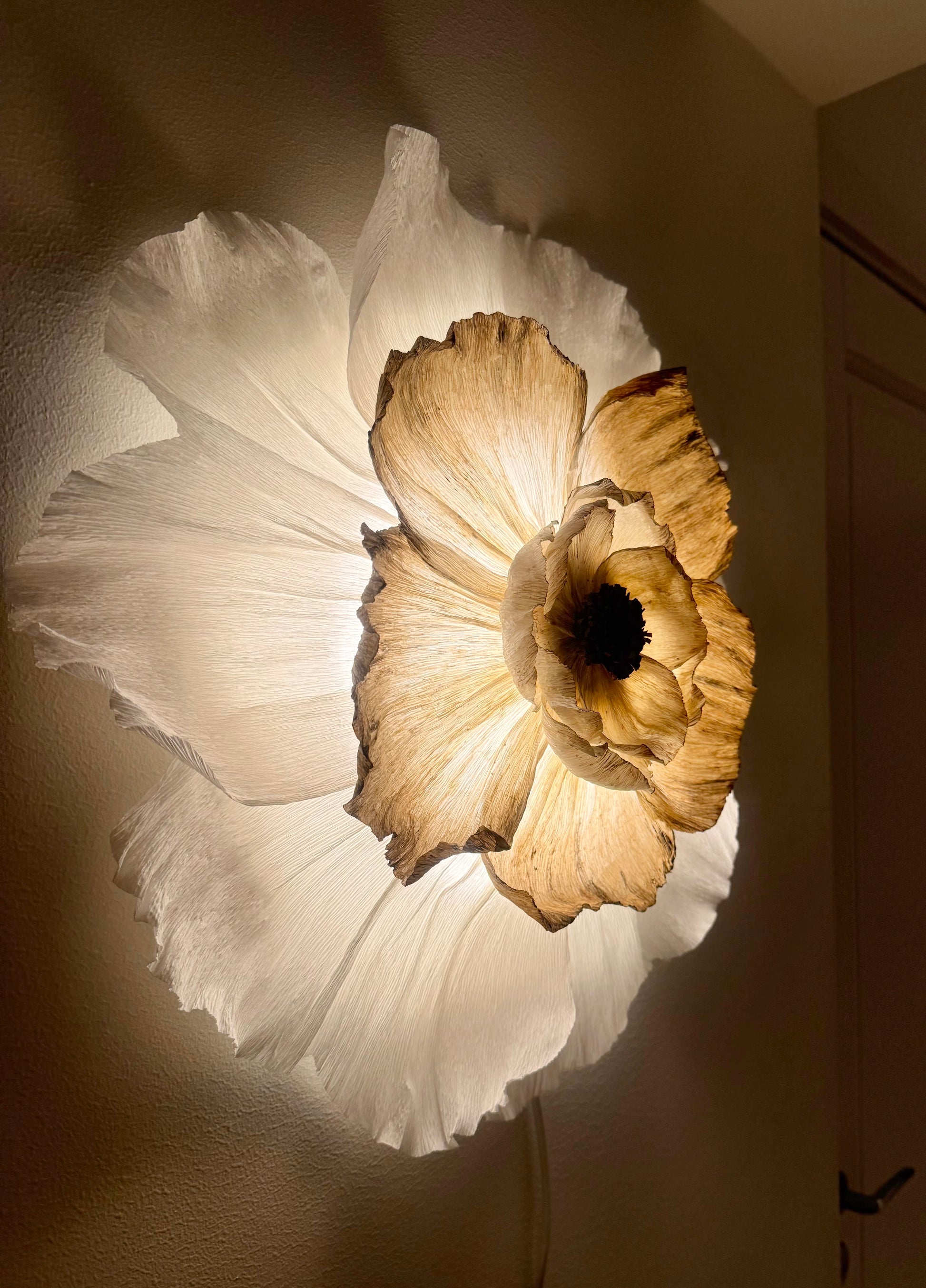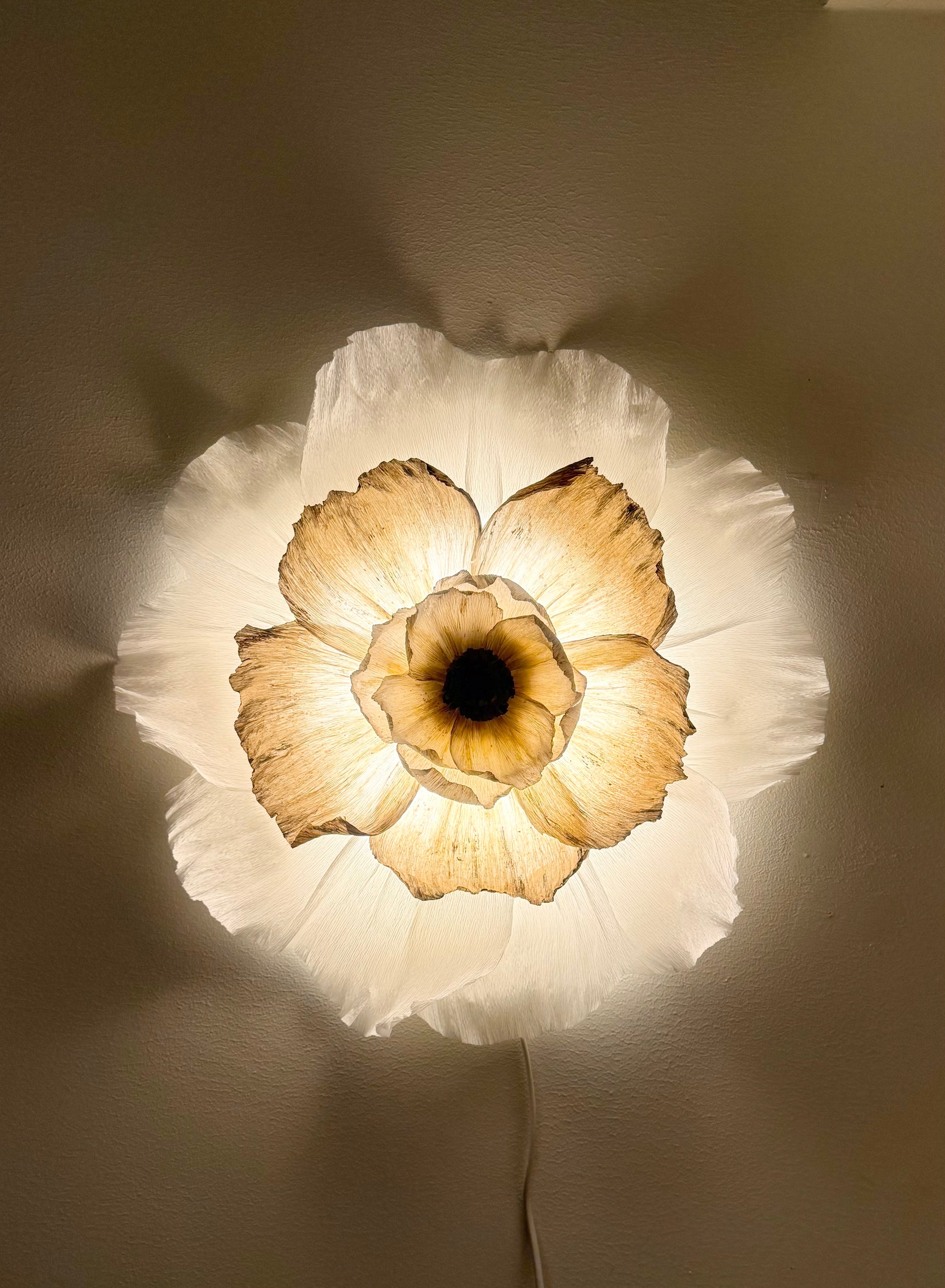 ”Aurora” är en fantastisk handgjord blomlampa att ha på väggen. Ett konstverk med funktion.