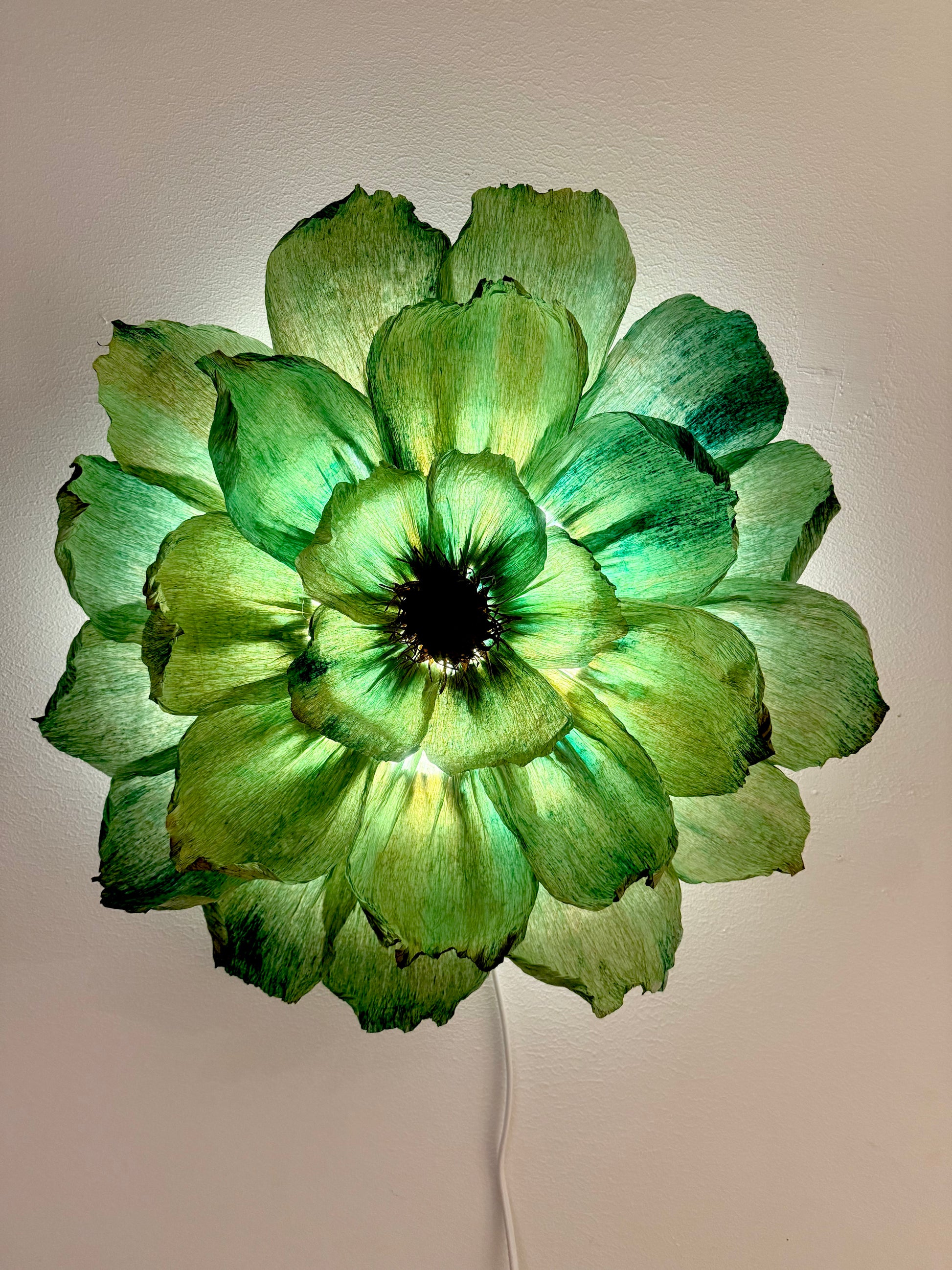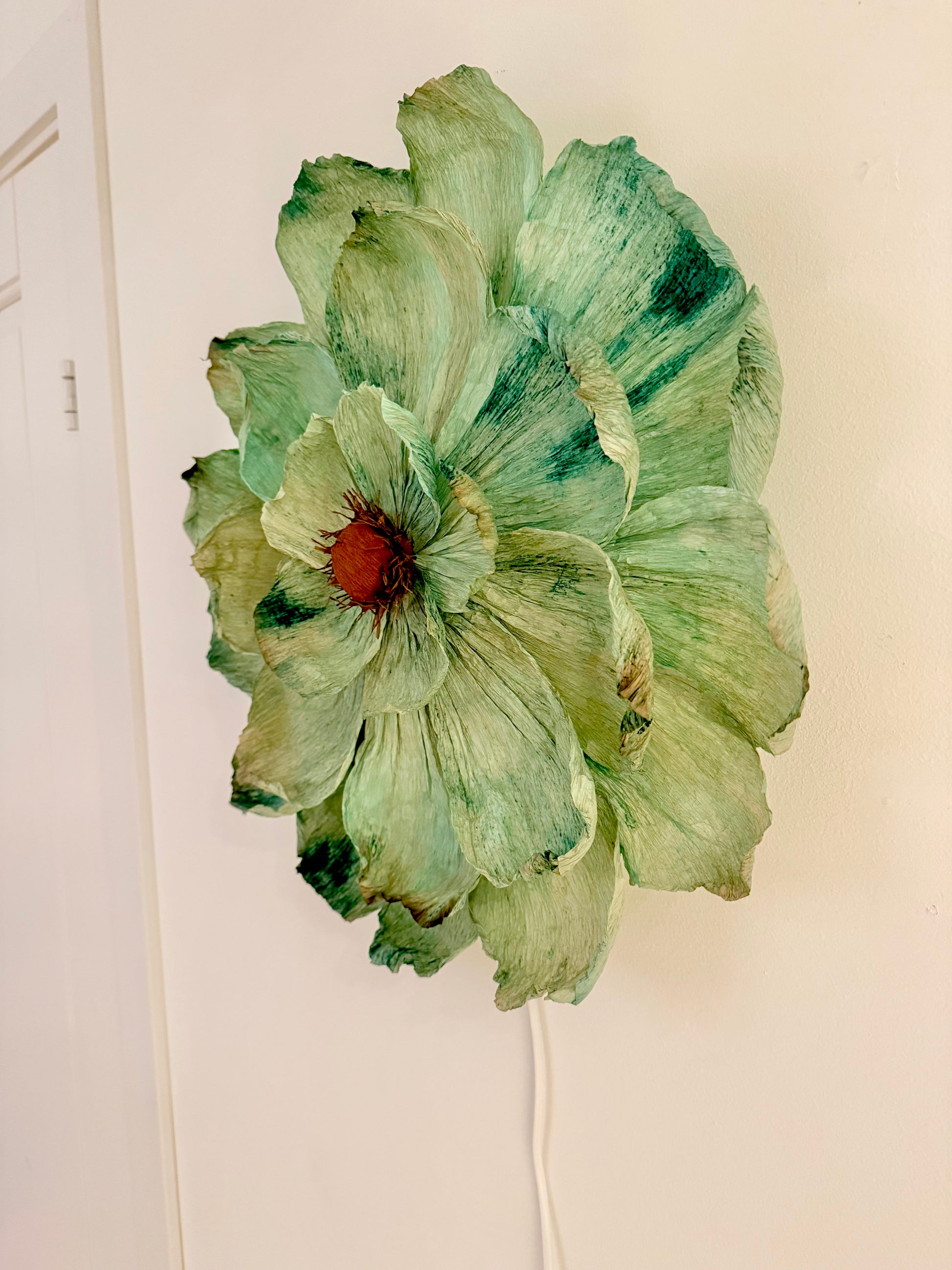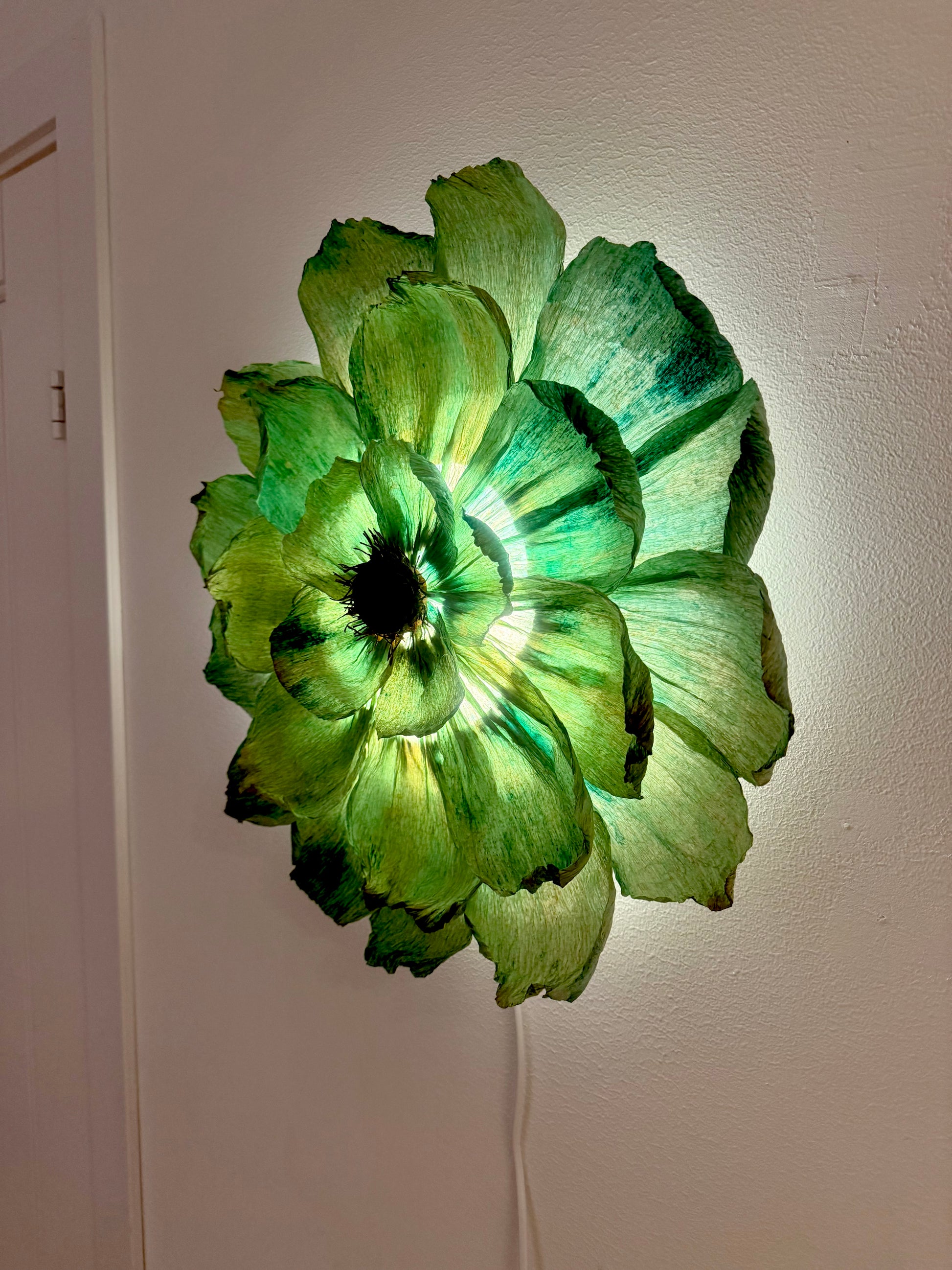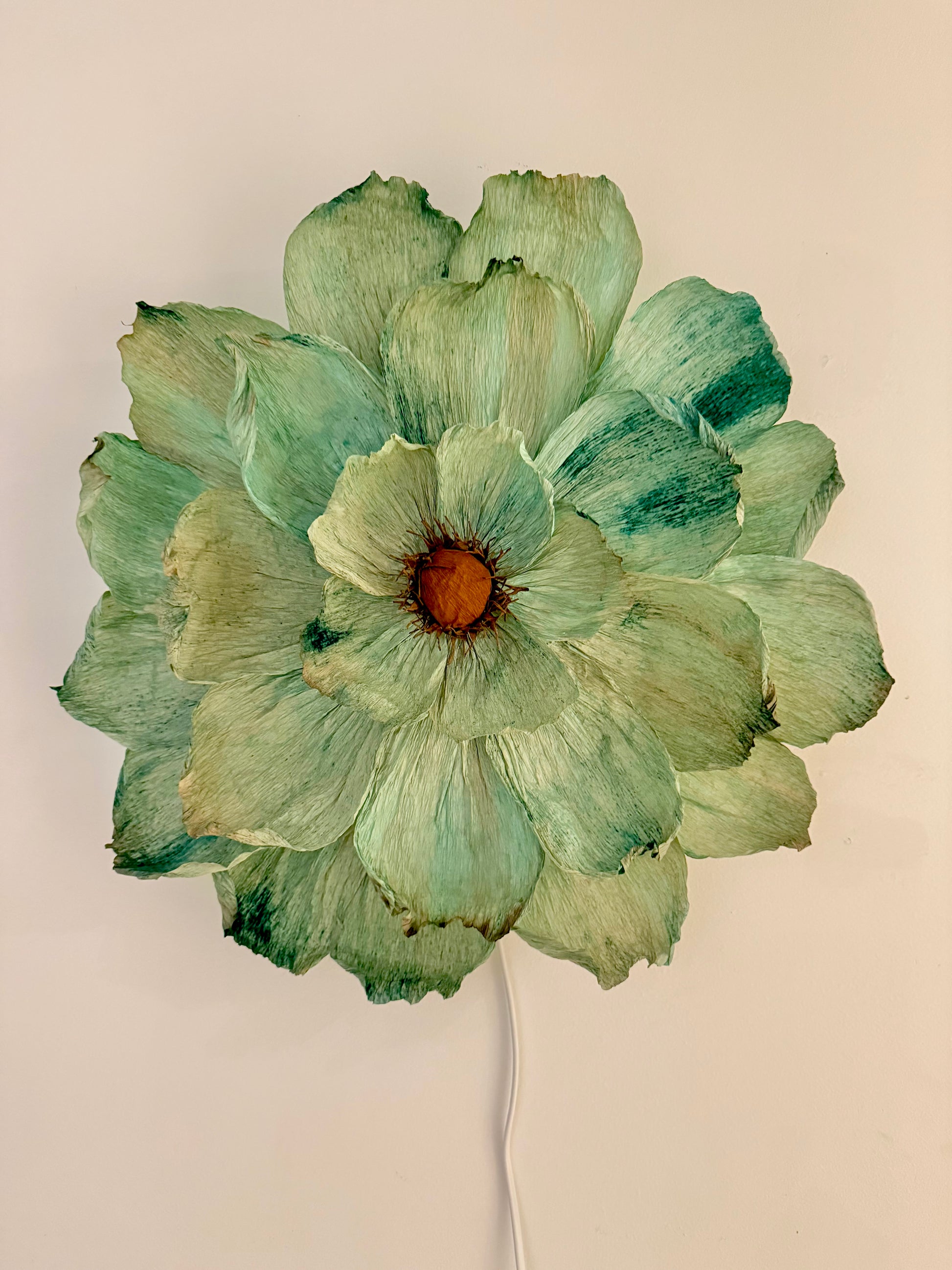 Denna vackra handgjorda vägglampa går i naturens färgskala och ger ett fantastiskt sken som tänd.