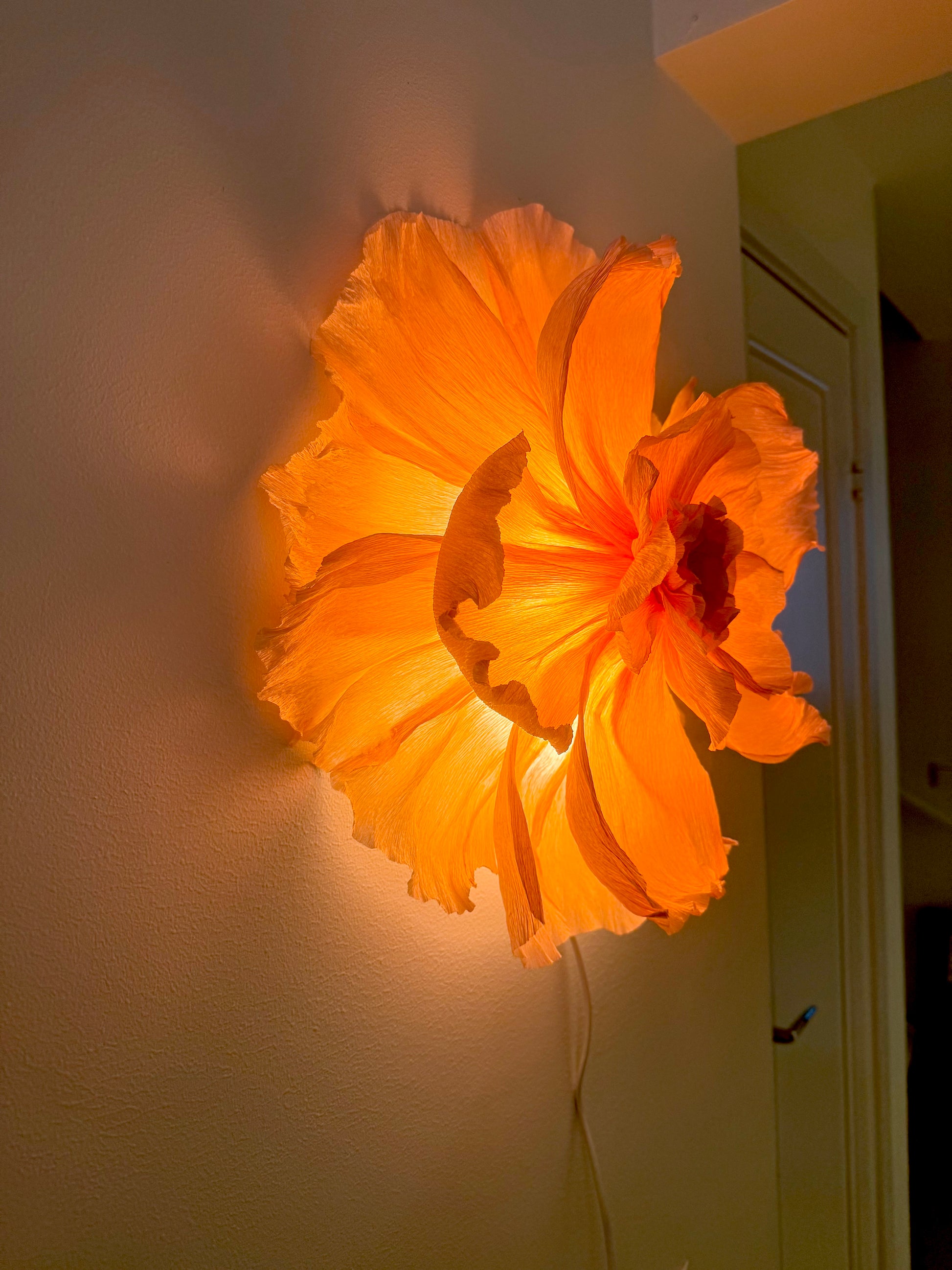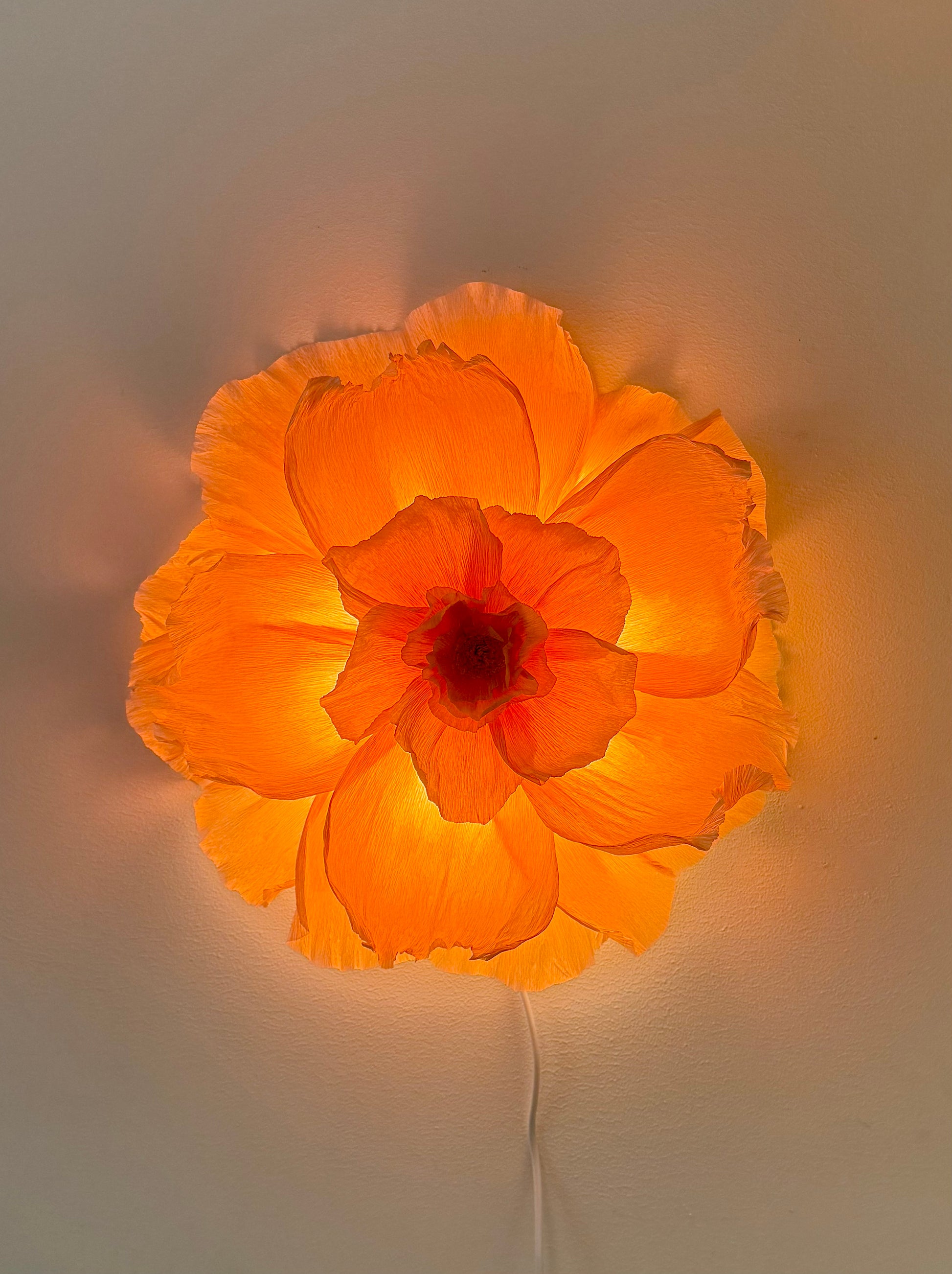 ”Izzie” är en fantastiskt fin handgjord blomlampa att ha på väggen. Ett konstverk med funktion.